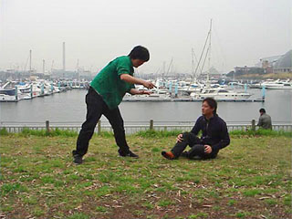 サングラスはできるだけ濃いものを用意してください。2枚重ねにするのも有効かもしれません。あと、PCの画面から1mくらい離れてみるのがすごく有効です。もしうまくいけば、上段の右に動いてる顔が引っ込んで、下段の左に動く顔が飛び出して見えるはずです。 |