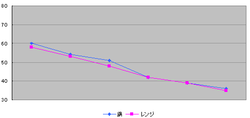 それにしても、際立つのはレンジの終了直後の高温ぶりだ。今回はせいろの方がそれほど熱くならなかったので温度の下降の様子を比べることができなかった。