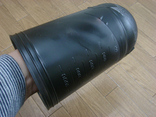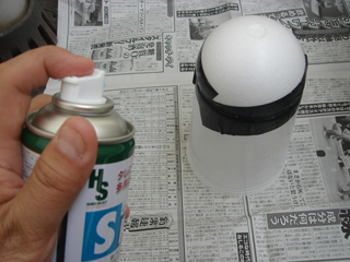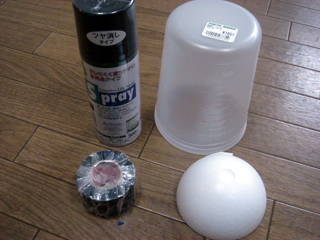 用意したのは手が入るサイズのビーカー(プラスチック製)、発砲スチロールの半球、あと色塗り用のスプレーやらガムテープやら。