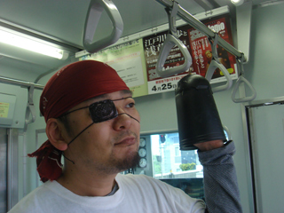 映像にしにくいので端折ってますが、実際はかぎ爪以上に難物なのが眼帯。当たり前ですが、距離感が全然とれない上にバランスまでがフラフラ。こんなんで船の上歩ける海賊って相当スゲェ、とあらためて納得。