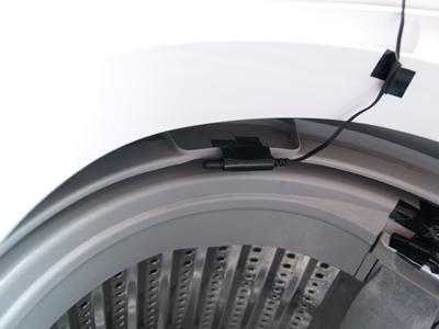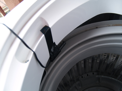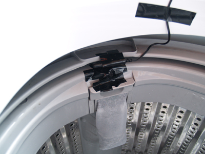 洗濯機は自転車とはやや異なり、スポークとかそういうものがないので、自分で工夫して取付けをする。 センサーとマグネットの間隔が離れすぎてしまうとうまく計測されないそうなので、そこいらへんに気をつける。