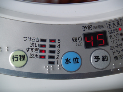 洗濯物を放り込み、スタートボタンを押した。 ガタガタと洗濯機が洗濯物の量を計算して、水はりを始めた。 洗濯槽が回転するのは脱水の場合なので、下の羽根だけが回転する洗濯行程ではスピードメーターは反応しない。