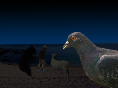 おともはペットのゴローくんです(やぎです)。偶然ですが、こんなところでくまを見ることができました。チョー感激です。あ、ハトが写真に入ってしまいました。ハトってどこでもいますね。