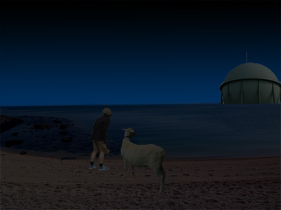 おともはペットのゴローくんです(やぎです)。遠くにガスタンクが見えたりして、まさに風光明媚。いうことなしです。