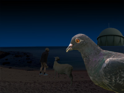 おともはペットのゴローくんです(やぎです)。遠くにガスタンクが見えたりして、まさに風光明媚。いうことなしです。あ、ハトが写真に入ってしまいました。ハトってどこでもいますね。