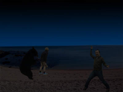 親戚の愉快なおじさんといっしょです。なんでこうなったのかは私にも不明です。偶然ですが、こんなところでくまを見ることができました。チョー感激です。
