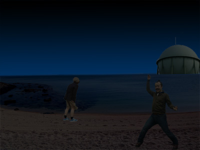 親戚の愉快なおじさんといっしょです。なんでこうなったのかは私にも不明です。遠くにガスタンクが見えたりして、まさに風光明媚。いうことなしです。