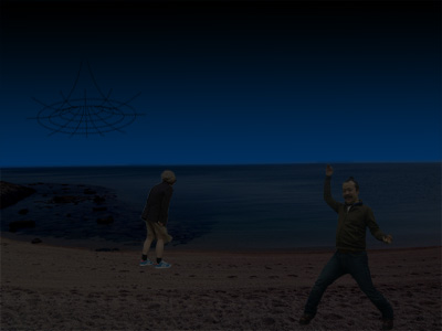 親戚の愉快なおじさんといっしょです。なんでこうなったのかは私にも不明です。よく見たら空にブラックホールがありました。うっかりビーチサンダルを吸い込まれてしまいました。残念!