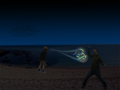 親戚の愉快なおじさんといっしょです。なんでこうなったのかは私にも不明です。よく見たら空にブラックホールがありました。うっかりビーチサンダルを吸い込まれてしまいました。残念!手前に映ってる小さいのは遺伝子です。リラックスしてると見えるもんなんですね。 では、そのうち戻りますのでおみやげをお楽しみに。私の仕事、終わらせておいてもらってもいいですよ。 |