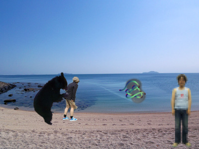 一緒に来ているのはテレビでも見たことがあるあのアイドルです。でもネットには出せないのでモザイクかけてます。ごめん!偶然ですが、こんなところでくまを見ることができました。チョー感激です。手前に映ってる小さいのは遺伝子です。リラックスしてると見えるもんなんですね。
