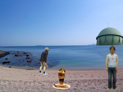 一緒に来ているのはテレビでも見たことがあるあのアイドルです。でもネットには出せないのでモザイクかけてます。ごめん!遠くにガスタンクが見えたりして、まさに風光明媚。いうことなしです。ちなみに手前にうつっているのは遊びながら食べてたデザートです。うまいっす!