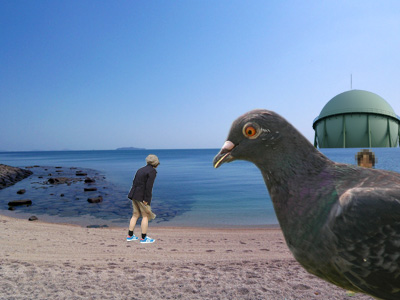 一緒に来ているのはテレビでも見たことがあるあのアイドルです。でもネットには出せないのでモザイクかけてます。ごめん!遠くにガスタンクが見えたりして、まさに風光明媚。いうことなしです。あ、ハトが写真に入ってしまいました。ハトってどこでもいますね。