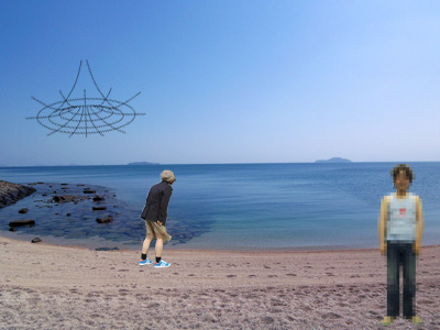 一緒に来ているのはテレビでも見たことがあるあのアイドルです。でもネットには出せないのでモザイクかけてます。ごめん!よく見たら空にブラックホールがありました。うっかりビーチサンダルを吸い込まれてしまいました。残念!