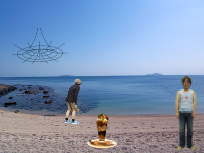一緒に来ているのはテレビでも見たことがあるあのアイドルです。でもネットには出せないのでモザイクかけてます。ごめん!よく見たら空にブラックホールがありました。うっかりビーチサンダルを吸い込まれてしまいました。残念!ちなみに手前にうつっているのは遊びながら食べてたデザートです。うまいっす! では、そのうち戻りますのでおみやげをお楽しみに。私の仕事、終わらせておいてもらってもいいですよ。 |