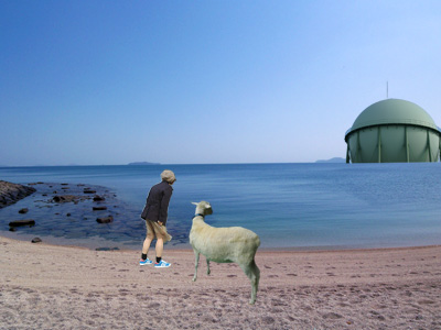 おともはペットのゴローくんです(やぎです)。遠くにガスタンクが見えたりして、まさに風光明媚。いうことなしです。