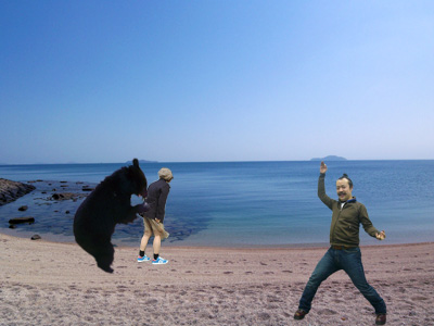 親戚の愉快なおじさんといっしょです。なんでこうなったのかは私にも不明です。偶然ですが、こんなところでくまを見ることができました。チョー感激です。