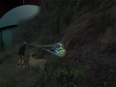 おともはペットのゴローくんです(やぎです)。遠くにガスタンクが見えたりして、まさに風光明媚。いうことなしです。手前に映ってる小さいのは遺伝子です。リラックスしてると見えるもんなんですね。