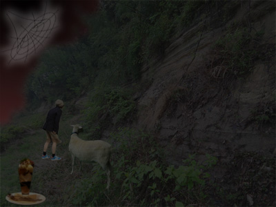 おともはペットのゴローくんです(やぎです)。よく見たら空にブラックホールがありました。うっかりビーチサンダルを吸い込まれてしまいました。残念!ちなみに手前にうつっているのは遊びながら食べてたデザートです。うまいっす!