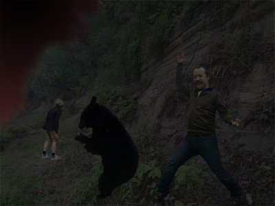 親戚の愉快なおじさんといっしょです。なんでこうなったのかは私にも不明です。偶然ですが、こんなところでくまを見ることができました。チョー感激です。