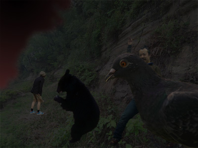親戚の愉快なおじさんといっしょです。なんでこうなったのかは私にも不明です。偶然ですが、こんなところでくまを見ることができました。チョー感激です。あ、ハトが写真に入ってしまいました。ハトってどこでもいますね。