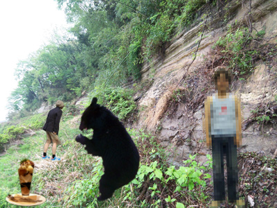 一緒に来ているのはテレビでも見たことがあるあのアイドルです。でもネットには出せないのでモザイクかけてます。ごめん!偶然ですが、こんなところでくまを見ることができました。チョー感激です。ちなみに手前にうつっているのは遊びながら食べてたデザートです。うまいっす!