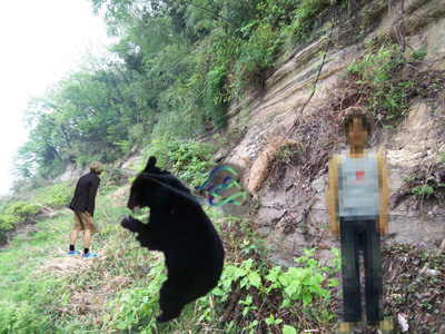 一緒に来ているのはテレビでも見たことがあるあのアイドルです。でもネットには出せないのでモザイクかけてます。ごめん!偶然ですが、こんなところでくまを見ることができました。チョー感激です。手前に映ってる小さいのは遺伝子です。リラックスしてると見えるもんなんですね。