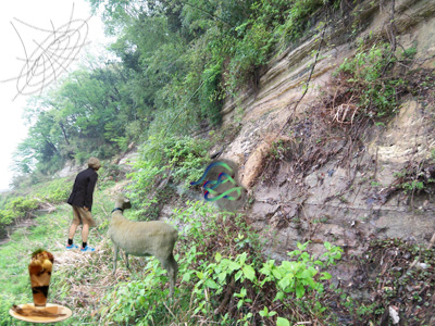 おともはペットのゴローくんです(やぎです)。よく見たら空にブラックホールがありました。うっかりビーチサンダルを吸い込まれてしまいました。残念!ちなみに手前にうつっているのは遊びながら食べてたデザートです。うまいっす!