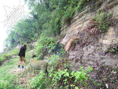 おともはペットのゴローくんです(やぎです)。よく見たら空にブラックホールがありました。うっかりビーチサンダルを吸い込まれてしまいました。残念!手前に映ってる小さいのは遺伝子です。リラックスしてると見えるもんなんですね。