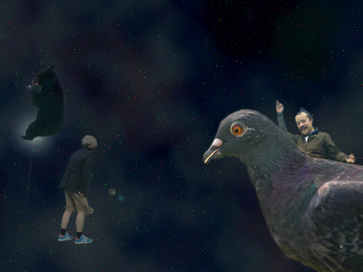 親戚の愉快なおじさんといっしょです。なんでこうなったのかは私にも不明です。偶然ですが、こんなところでくまを見ることができました。チョー感激です。あ、ハトが写真に入ってしまいました。ハトってどこでもいますね。