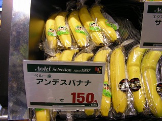 先ほどと同じ店で見つけた「アンデスバナナ」は、一本150円の高級タイプ。価格を反映してかサイズも大きめだ。
