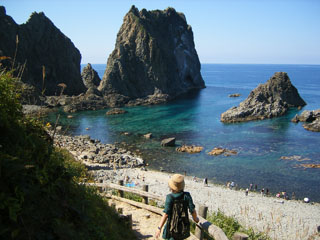 海岸に下りるには、急な階段、しかも段差の激しい階段を下りていかなければならない。