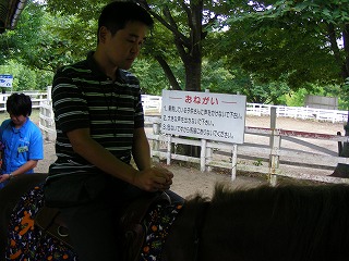 心の中の何かを断ち切って、ポニーに乗馬。勇気を出して係員に「すみませんが、写真、撮ってもらえますか?」とデジカメを渡して撮ってもらった。