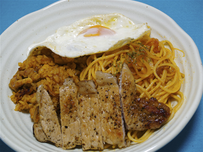 ふつうに考えると、スパゲッティーにちくわを入れるというのは、ベーコンが買えない時のメニューである。