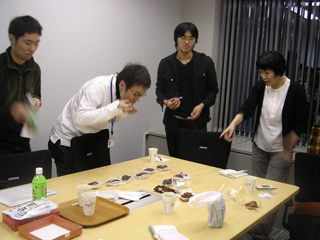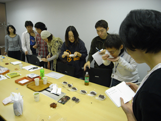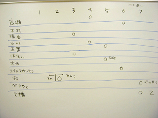 他の皆さんも、「赤福って7じゃないか」だの「3と4の間で急激に変化する」だの「いや、4は寂しい」だの「チリコンカン(私が持参した箸休め的豆料理)が一番うまい」だの、メモを取るのが追いつかないほどの感想を言ってくれた。ありがたいことです。 |