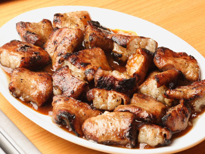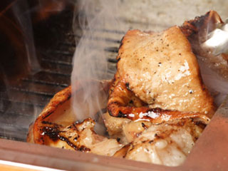 とにかくおしゃべり好きの店長に乗せられていると、あっという間にこの店自慢のスーパーホルモンが焼きあがった。 |