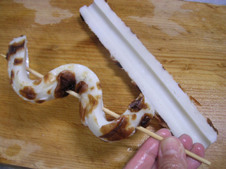 ただし、川魚以外にも踊り串が有効なことはちくわが証明するまでもない。タコウィンナーやウサギの形の林檎だって、食べ物の見た目を変化させるという点に於いては、同様の効果を期待したものだろうと思うのだ。