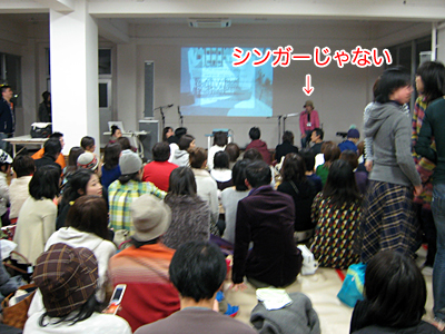 それでもやった方がいい、と主催者側の強いプッシュもあり、思い切ってマイクを使って訴えてみた。ライブのセッティングのままだったので、今にも歌い出しそうなスタイルであるが、僕がマイク越しに伝えるのは「僕に悩みを打ち明けてください」というメッセージだ。