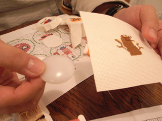 自分は、刺してるときも楽しいんだけど、作品を作る達成感があって、だからいろんな人にやってもらいたいし、そういう機会があるといいなと。この前ワークショップやったら30人も集まったんですよ!男の人は3名程でしたが・・・。いろんな人に参加してもらえるようなワークショップを企画中です。