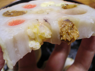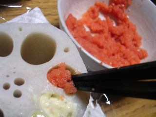 穴ごとに違う具を入れるのも楽しかったが、さすがにちょっと手間がかかる。次は全部の穴を同じ具で統一したい。そうすれば、蓮根をグリグリ押し込むだけで具が詰まってくれる。