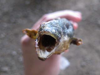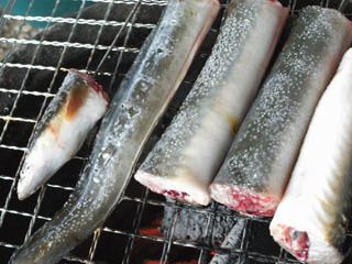 ……「ウナギの白焼き」の味がした。食べる時に骨が少々邪魔だし、山椒などがあったほうが、川魚特有の臭みは消せるから薬味があったほうがベターだろうけど、これはこれで、イケる。