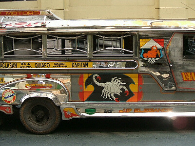 さて、最後は直線によってデザインされた、幾何学的な模様のペイントを紹介しよう。これは標高の高いの避暑地である、バギオという町にて多く見られたデザインだ。 |