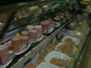 人によって、外国と聞いて真っ先に思い浮かべる光景がビバリーヒルズ青春白書みたいな光景だったり、カーニバルだったりベルサイユ宮殿だったりするだろうが、僕の中での外国の風景はソーセージや豚肉などが山盛りになって売られている風景なのだ。 |