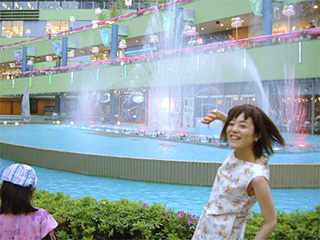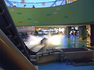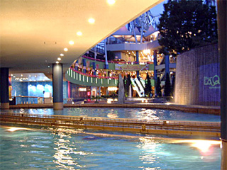 到着した途端「ラクーアガーデン」にある大きな噴水がお出迎え。間近にいると結構なしぶきが降り掛かってきます。 |