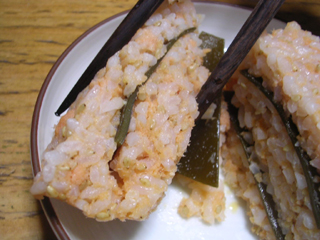 味は合格。でもこれは「昆布とタラコの重ねたの」以外の何物でもないな。このまま蒸したら固まるかしら。
