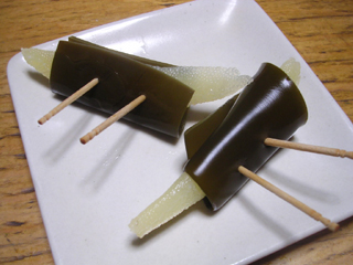 そろそろ冷蔵庫に入れた子持ち昆布が固まった頃だ。さ っそく試食といこうじゃないか。