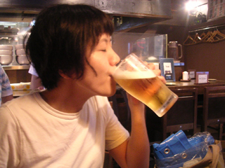 ここで本物のビール(エビス)を飲んだのだが、最初のひとくちを飲んだ直後の私の感想は「やっぱりビールはおいしいねぇ!」だったのに、残る2人はこう言い合っていた。