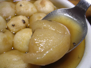 こちらの目論見通り、お麩はスープを吸いまくってパンパンに膨らんだ。ちょっと噛んだだけでジュワッとスープが口の中に溢れ出る。
