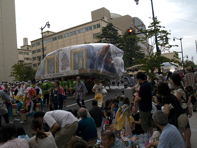 ねぶたがゆっくりと、確実に、所定の位置に運ばれてくる