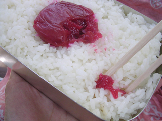 梅の残りとごはんの減り。そのバランスを見計らいながら、ただひたすらに食べ続けた。