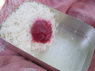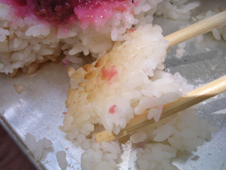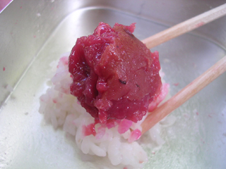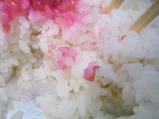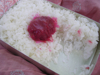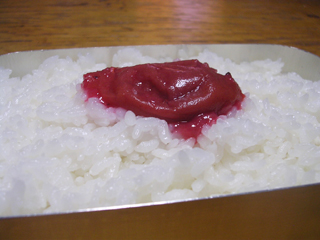 なんと、梅が余った。40グラムの梅干しは、500グラムのごはんに余裕で勝った。楽勝だ。